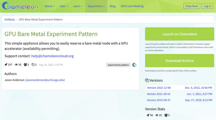 - Streamlined One-Click Launch: Integrate with Chameleon’s existing provisioning workflows so users can launch multi-node clusters directly from Trovi.