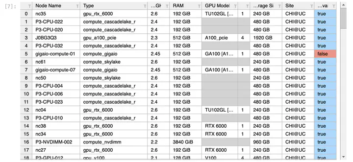 A Juptyer Widget for viewing and sorting available resources on Chameleon